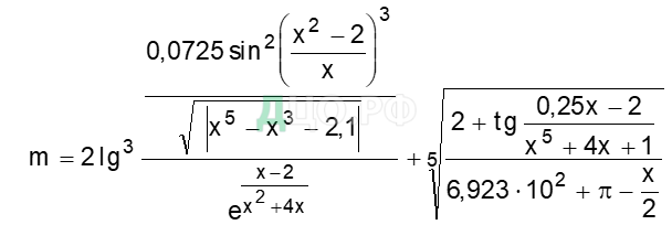 Вычислить значения сложного выражения при двух заданных значениях аргумента х1 и х2 (таблица 3).