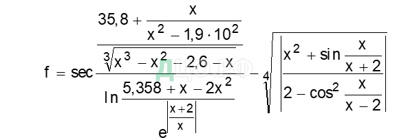 Вычислить значения сложного выражения при двух заданных значениях аргумента х1 и х2 (таблица 3).