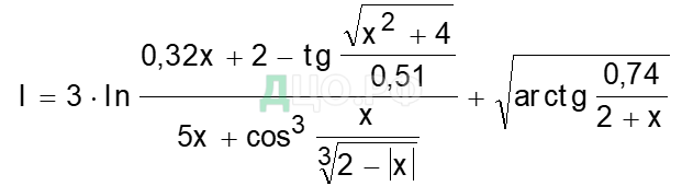 Вычислить значения сложного выражения при двух заданных значениях аргумента х1 и х2 (таблица 3).