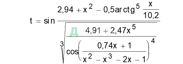 Вычислить значения сложного выражения при двух заданных значениях аргумента х1 и х2 (таблица 3).