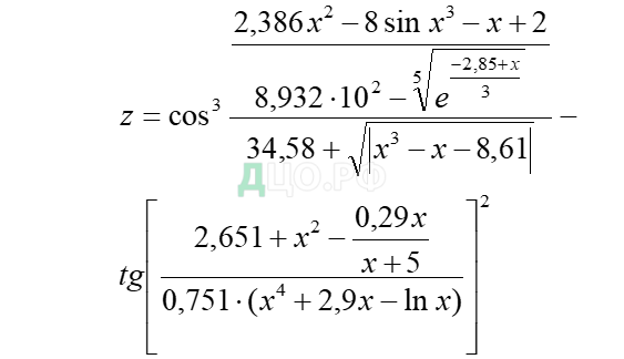 Вычислить значения сложного выражения при двух заданных значениях аргумента х1 и х2 (таблица 3).