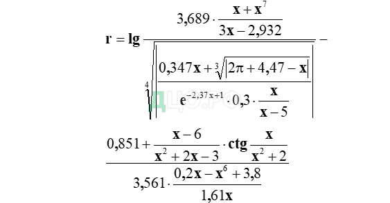 Вычислить значения сложного выражения при двух заданных значениях аргумента х1 и х2 (таблица 3).