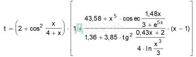Вычислить значения сложного выражения при двух заданных значениях аргумента х1 и х2 (таблица 3).