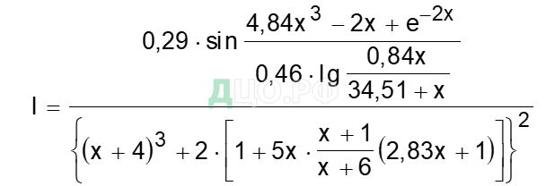 Вычислить значения сложного выражения при двух заданных значениях аргумента х1 и х2 (таблица 3).