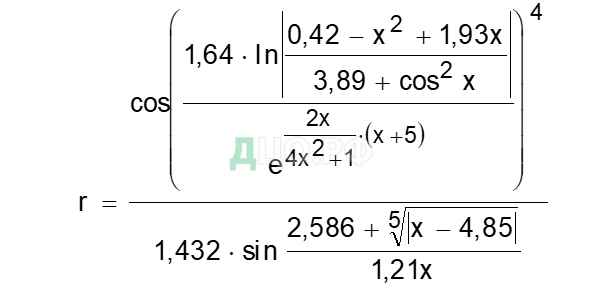 Вычислить значения сложного выражения при двух заданных значениях аргумента х1 и х2 (таблица 3).