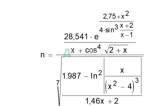 Вычислить значения сложного выражения при двух заданных значениях аргумента х1 и х2 (таблица 3).