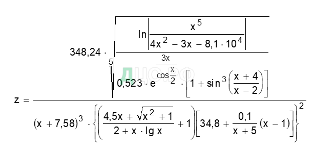 Вычислить значения сложного выражения при двух заданных значениях аргумента х1 и х2 (таблица 3).