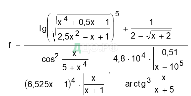 Вычислить значения сложного выражения при двух заданных значениях аргумента х1 и х2 (таблица 3).