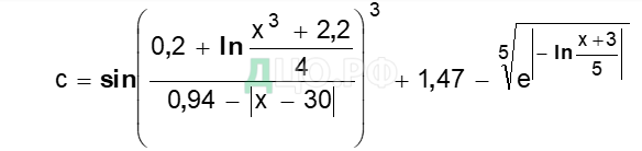 Вычислить значения сложного выражения при двух заданных значениях аргумента х1 и х2 (таблица 3).